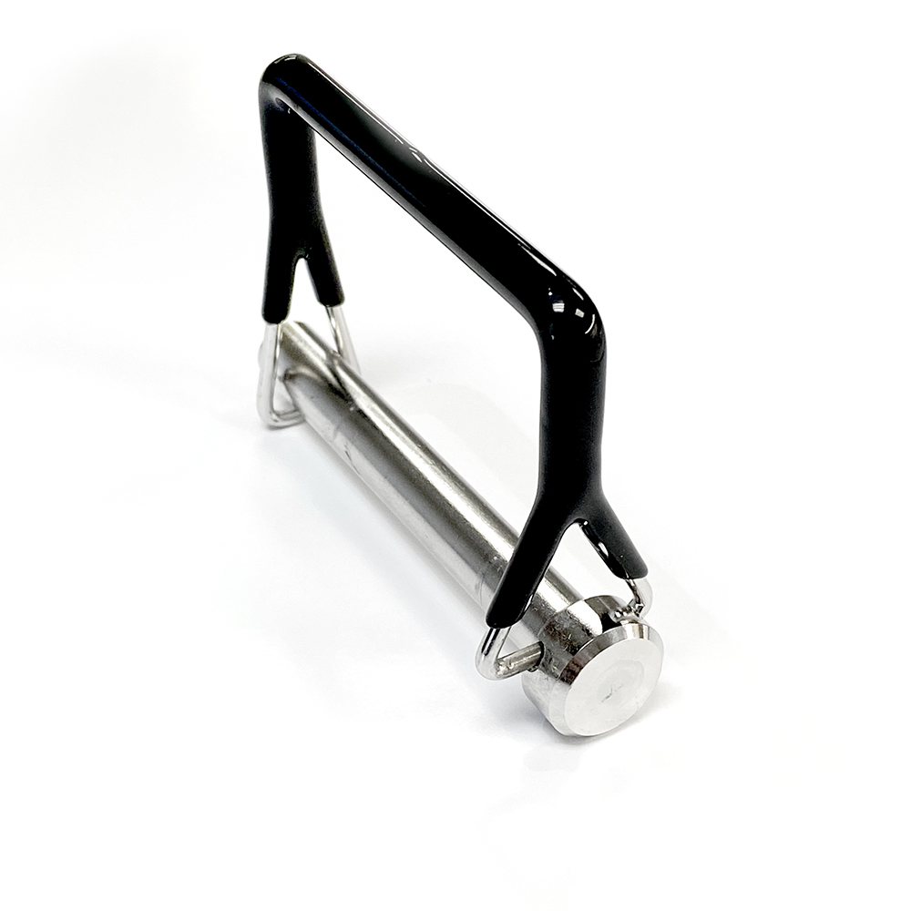 Stainless steel swim step locking pin used to secure CMI transom and platform brackets. Made from 316 electropolished stainless steel, this locking pin will hold for years in the marine environment. This pin is overmolded in rubber to reduce any noise or vibration between the brackets when on the water. This pin is manufactured in the in the USA with domestic materials and labor.
